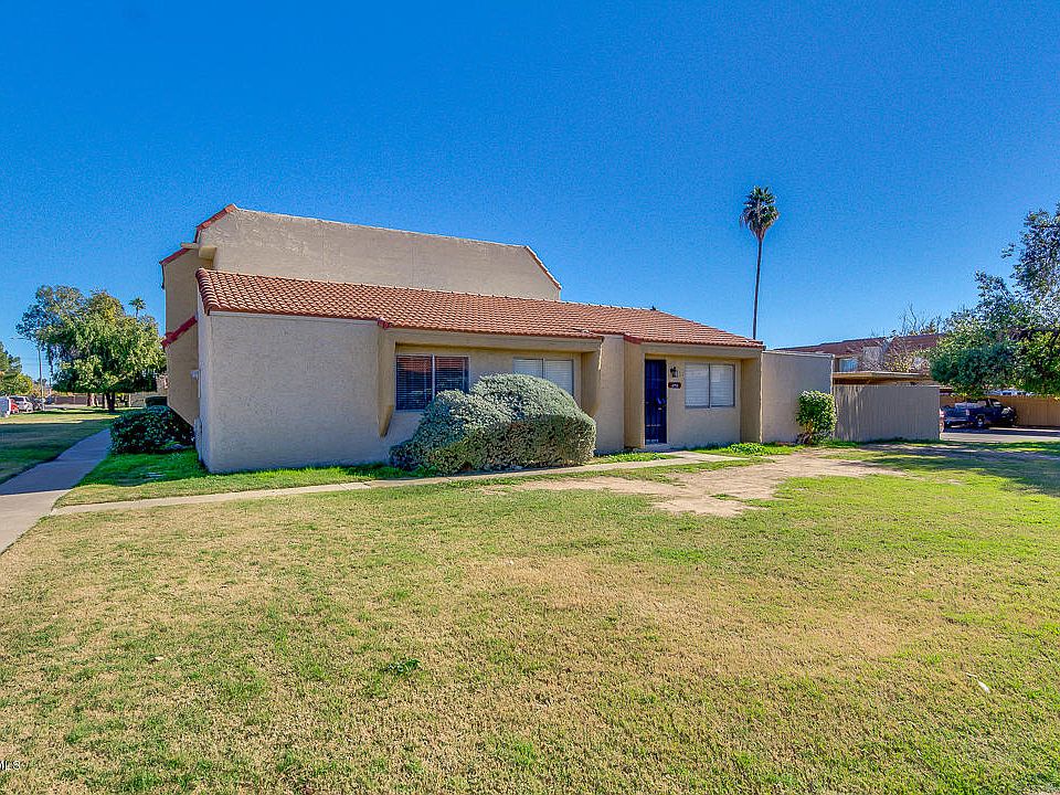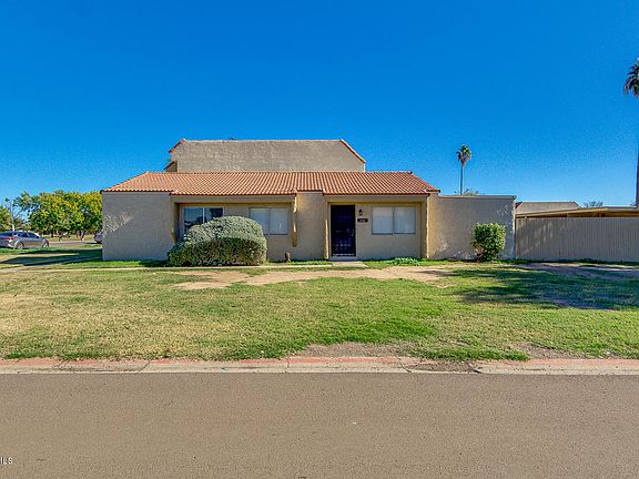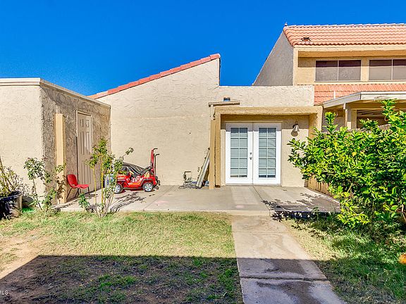 Great single-story townhouse opportunity. Hard to find 3 bedroom, move-in ready. Living room, kitchen and hallways feature tile flooring. Vaulted ceilings when you walk in, giving a more spacious feeling and ceiling fans. It has two covered parking spots. Spacious, fenced backyard area with storage as well. Community across from a school & park, with large grass area and basketball courts. Community pool is in the process of construction / remodeling. Pics are from before. Location near Cardinals stadium, Coyotes, Westgate, ASU West, GCC & much more. Do not miss this opportunity at a great value!