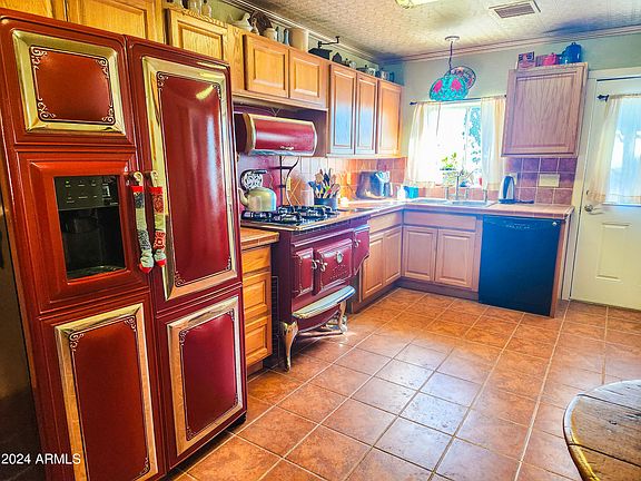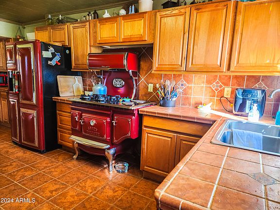 This immaculate ranch property is situated on 90 acres of land and features a 3 bedroom, 2 bath home. The property offers a private water well, and an extra well with a third irrigation well. The property includes a barn and covered parking. The front yard is adorned with bougainvillea, vines, and rosebushes, while eucalyptus trees can be found on the property. The residence is in pristine condition and boasts custom-made appliances, adding a touch of individuality to its expansive and well-kept surroundings. The home also features a large basement with ample storage space. Throughout the entire home, you will find custom woodworking, custom tile work, built in bookshelves, lighting fixtures, molding, and unique features, showcasing the attention to detail.