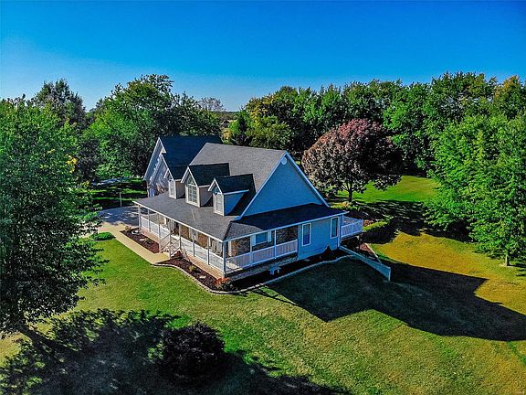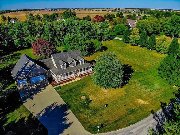 Don't miss this generational opportunity to live in one of the best locations in all of Aviston with a private 2.25 acre corner lot. This 1.5 story home boasts elegant curb appeal with a wraparound front porch & elevated rear deck to take in serene country views. Inside, enjoy soaring ceilings and a thoughtful layout. The split bedroom plan offers a main-floor master suite. The en suite bath has a separate shower & opulent soaking tub, walk-in closet with windows, & a seated cosmetic vanity. Well-appointed kitchen with premium cabinetry. Take on all projects with an immaculate garage with car lift & a basement workshop space. The walk-out basement has a pool room, family room, full bath, and tons of storage. Outside, let your pet roam in the fenced-in space with trellis. Spend fall nights at the fire pit & summer days under your sunsetter awning. Perfect for any family, enjoy endless possibilities in a coveted blue ribbon school district. Dream homes don't wait on rates!
