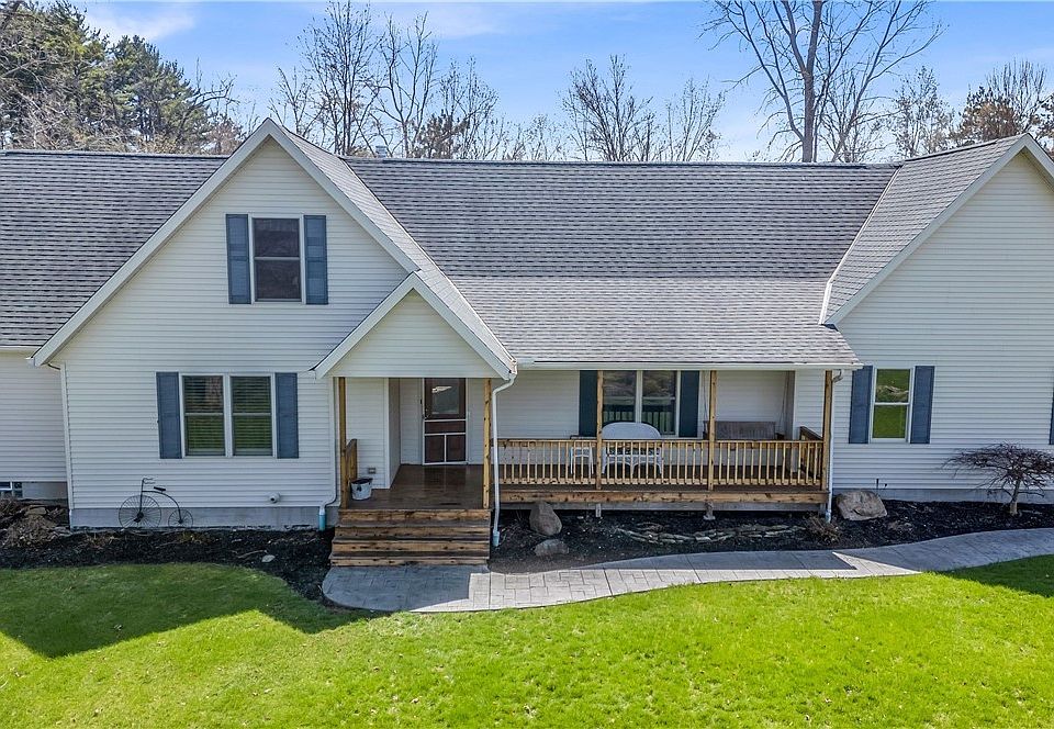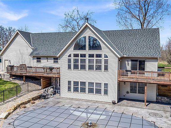Exceptional property , wooded lot , immaculate home, with 3 heat sources, Forced air High efficiency propane furnace, radiant hot water heat in the basement floor,, and Master Bath floor propane fired, heat pump, Air tight soap stone wood burner in the great room. Large inground heated swimming pool fenced . 30 X 80 pole barn with concrete floor , water, 12 ft. high, insulated, 200 amp service, radiant in floor heat , with outdoor wood burner , or can be easily with the flip of A couple valves and switches transfer to propane fired. 1/2 bath , toilet , urinal , and sink. 42 X 48 pole barn 16 ft. high , concrete floor , electric . The home and basement sit high with natural drainage.