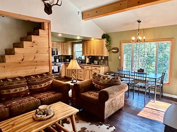 Welcome to your picture-perfect mountain escape. This cabin is immaculate and ready for good times with family and friends. The owners have done many recent upgrades. You'll love the fresh and clean look of the exterior. Enjoy sitting out on your large, beautiful decks or lounging with your favorite beverage by the new firepit. You'll have all of the conveniences of home with a stunning kitchen equipped with built-in appliances. The entry boasts a mudroom for your snowy boots. Hang out in the open living area featuring a very nice pellet stove and plenty of room for your guests. Imagine having your morning coffee with the view of the trees right outside your window. It's breathtaking. The upstairs bedroom is very large and offers two closets and access to the deck. Downstairs there is another bedroom near the bathroom. The washer, dryer, and refrigerator stay. There is a basement for your extra stuff and tools, a storage shed, and a treehouse. Large double lot. Let's go see it.