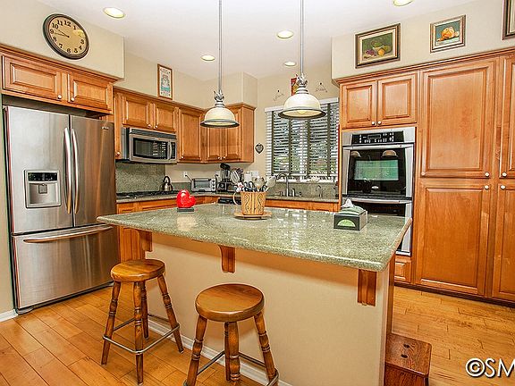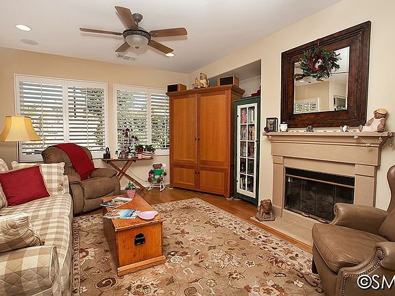 Impressive 4Br, 3Ba, 2170 esf residence situated in the Ravina community in beautiful Carlsbad. Numerous upgrades and amenities include gorgeous hardwood flooring, premium carpet, and custom Plantation shutters. The kitchen features granite counter-tops, upgraded stainless steel appliances including Kitchen Aid 5 burner cook-top, and double-oven. Center island with seating, walnut cabinetry with pull-out shelves & drawers, and instant hot water! A cozy gas fireplace in the living room and wired with speakers in 5 rooms further enhance this fabulous property in addition to multiple ceiling fans and central forced air conditioning. The downstairs master has been upgraded and includes a jetted tub! The low water use front yard has been professionally designed & installed. Add to all of this non-chemical whole house water filtration, right height new toilets with low water usage, laundry room with sink and you have a very distinctive property in an exceptional location. Home backs to small park with neighbor on only one side and located near elementary, middle and new Sage Creek High School. Welcome home!