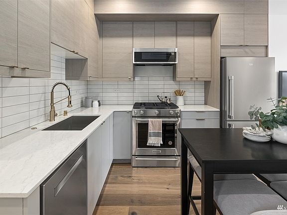 Another amazing project by Roland Development! Location does not get much better than this! Modern, classic aesthetics, with functionality clean lines, and high quality finishes. Spacious end unit with custom elements and light filled spaces. Hardwood floors, custom tile work and thoughtful design, with a well appointed kitchen that features high end appliance package, quartz countertops and fine cabinetry. Generous primary suite with 2 walk in closets and a lovely primary bath, as well as a 2nd bedroom and bathroom on the upper floors. Both baths feature heated floors. Don't miss the views from the rooftop deck!!