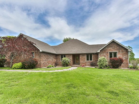 Beautiful home that sits on 15 acres in Bolivar school district and over looks you private pond. The home itself is a full brick 3 bedroom 2 full bath with an additional office room. It is all electric with a central HVAC system, Hardwood floors through the main living area, tile in the kitchen/dining combo and bathrooms, and carpet in the bedrooms. The home also has a propane fireplace in the main living area. There is also a 40'x50' shop & lean to with power and 12'' thick concrete floors. Beautiful setting, convenient location, and a well built home with shop and pond on 15 acres! Call your real estate professional today and schedule your own tour of 4759 S 92nd Road in Bolivar today!