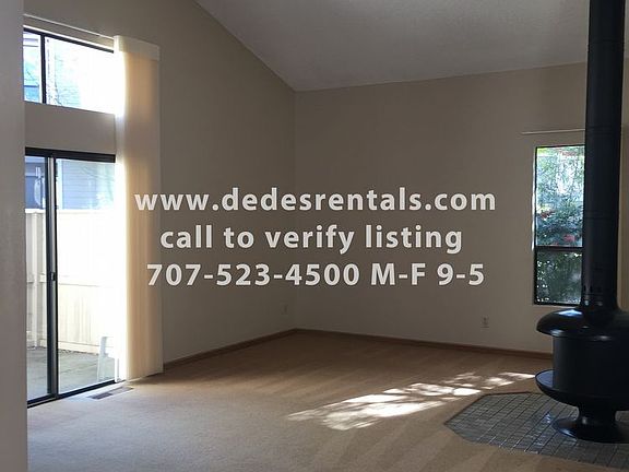 Beautiful and unique 3 bedroom, 2 bath, plus a bonus room, single story condo in Bennett Valley! This home has a very unique layout that includes adjoining rooms and one bedroom where the entrance is through a bathroom. Attached to the master bedroom is a bonus room or office. This home features new paint throughout and carpet flooring. The kitchen and bathrooms feature luxury vinyl tile flooring. The kitchen features white cabinets, a stainless electric range, stainless range hood, stainless dishwasher, a refrigerator; as is, and a garbage disposal. The home also features central heating, a wood burning fireplace, electric washer/dryer hookups, a small private patio, and plenty of storage including a storage loft in the attached 2 car garage! This small condo community features walking paths, guest parking, a community zen or meditation garden and a community pool and spa! Tenant responsible for all utilities. Two vehicles maximum and they must be parked in the garage as per HOA. Truly a must see!
