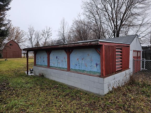 This 2 bedroom 1 bath home is located in the suburbs on .50 acre lot! Nice sized living room with fireplace. Kitchen has a dining area. There are many outbuildings that include a barn, shed and a detached garage with workshop. Fenced back yard with a large deck.