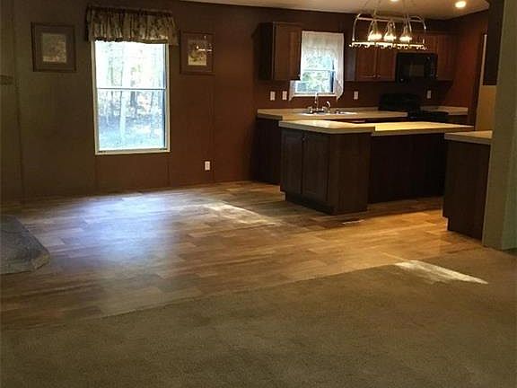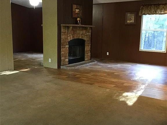 COZY UP to a dual sided fireplace in this immaculate doublewide mobile home on 2.5 acres in Liberty Community! This spacious home has approx 2,240 sq ft, 2 living areas, 4+bd/2ba with wonderful covered porch to enjoy peaceful surroundings! Master suite has separate living area that can be used as home office or sitting area. TONS of closet space! Fenced on back side, large storage shed all on park like setting!