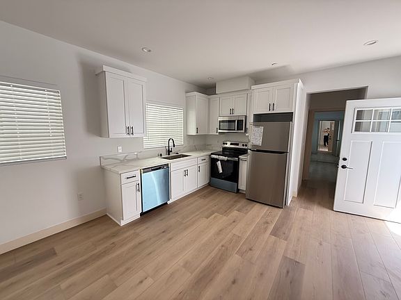 Welcome to this stylish 1-bedroom, 1-bath apartment with a fresh, all-electric design. Enjoy brand-new appliances, a sleek electric stove and oven, and efficient wall AC units for year-round comfort. The open layout, hardwood floors, and private outdoor space create the perfect blend of charm and convenience. Comes with a designated parking spot and a front private patio perfect for a BBQ or your morning coffee. Nestled in a highly walkable neighborhood near top studios, local shops, dining, and transit! Water usage is included in rent; however, the tenant is responsible for the hot water bill.