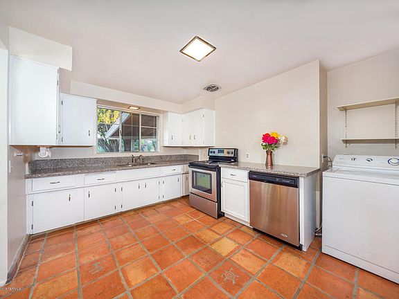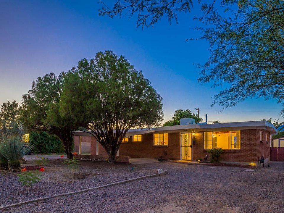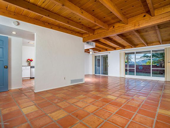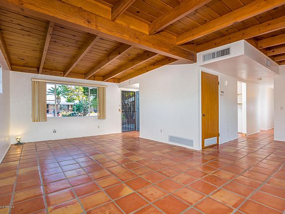 Beautiful 3 large bedrooms 2 bath Home in a great and well maintained neighborhood. Move in ready. Freshly painted. Light and Bright. Remodeled kitchen with new appliances and beautiful classic Saltillo tile. Look for the artist hand carved Petroglyphs in many tiles throughout the house! Dining area opens to an inviting covered patio and nice Backyard with fruit trees. The lot is huge and has room for many possibilities (enclosed wood fence is about 1/3 of back yard and was built for the dog). Low care front yard with a circular driveway. Centrally located, 3 miles from UofA, close to shopping, amenities and all areas in Tucson. This home has a wonderful view of the Catalina Mountains. A must see home!