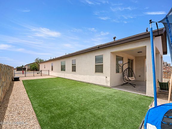 Welcome to 4757 Elsinore Ave in beautiful Las Cruces, NM! This stunning 5-bedroom, 3-bathroom, all-tile home boasts 2,171 square feet of living space on a desirable corner lot. Featuring a gourmet kitchen with a built-in oven, 5-burner cooktop, granite countertops, and stainless steel appliances, this home is perfect for culinary enthusiasts. The open living concept is enhanced by elegant wood beams and a luxurious fireplace, creating a warm and inviting atmosphere. Enjoy the convenience of an 8-foot double gate for RV or boat parking, and a spacious 2-car garage. Situated near the Red Hawk Golf Course and surrounded by parks, a splashpad, a skating park, and walking trails.