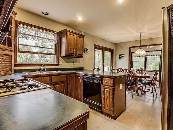 Great home on over 14 gorgeous acres, 2852 Sq Ft of finished living space, 3 bedrooms and 3.5 bathrooms. Kitchen features snack bar and dining area. Spacious living room with fireplace and built in storage. First floor master suite with private bath, first floor laundry and great living space. Full finished basement and attached 2 car garage. House is surrounded on 3 sides by state land. Barn has 7 stalls with tack room, electric, and water. There are 5 paddocks and 2 running sheds. Second outside water hydrant with electrical box, on the south end of the large paddock by the drive way. Located directly across from the Ortonville Equestrian camp ground, that has groomed trails for horse back riding, snowmobiles, hiking, etc.