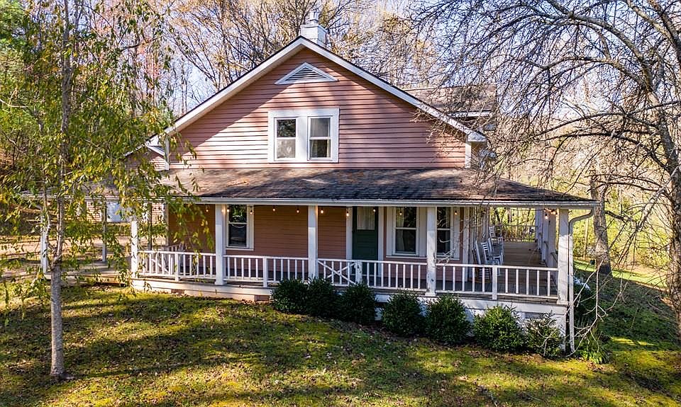 Just the charm you want in an old farmhouse - Original bead board ceilings on the large wrap around porch, 6 panel interior doors, a chimney with painted exposed brick in the middle of one of the upstairs bedrooms, original hardwood floors in the dining room - and what a large dining room! Then there are the newer updates: New windows, New mini-splits, gas log fireplace, LVP on some floors, T&G ceiling in the dining area. The main level consist of the living room with fireplace, the dining room & kitchen, the master bedroom with a walk in closet, a cozy guest room and a full bath. Upstairs are two large bedrooms with original wood flooring, another full bath and a sitting room/ loft area at the head of the stairs dividing the two bedrooms. The wrap around porch extends around 3 sides leaving lots of room for a hammock, a porch swing and several sitting areas to enjoy the long range view. The laundry is a separate room at the end of the porch. Also off the back porch is a single garage & single carport under one roof PLUS a play house for the kids.