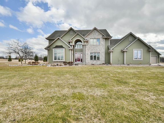 Holy Hill home awaits your family! Country living yet only minutes from freeway & shopping. Step inside to experience the custom features of this home. 2-Story Great Rm w/wall of windows & stunning floor to ceiling stone gas FP opens to the beautiful sun rm. KIT has a big dinette area, custom Birch cabinetry, HWF's, 5 ft center work island, brand new black SS appliances that are included. KIT pantry & Butler's pantry. Flex rm w/arched opening can be dining rm or home office. 1st floor Master suite w/WIC,dual sinks,shower & soaking tub.Freshly painted interior, brand new carpeting & new light fixtures thru out. Brand new furnace 12/19.Attached 3.5 garage & great additional heated garage.Nicely landscaped yard w/abundant plantings on 1.26 acres!