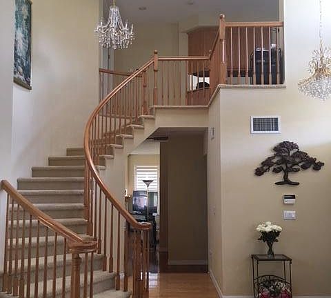 Located at end of private cul-de-sac near Mission Park. 3 minutes from 680 and half mile from Downtown Pleasanton restaurants and shopping. Zoned for award winning Foothill High School and Pleasanton Middle School. Large parklike backyard with many fruit trees, beautiful rose bushes, large grass area, relaxing Koi pond with waterfall, fountain. Perfect for entertaining. Rose bushes yield flowers for your house April-October. First floor has hardwood floors, updated kitchen with granite countertops, Viking 6 burner stove, 2 ovens, two marble gas fireplaces, abundant light from many windows, vaulted ceilings, skylight, 1 bedroom and full bathroom. Second floor has 3 large serene bedrooms, 2 stylish updated bathrooms and loft. 3 car garage. Tenant pays all utilities. Gardener included, pets negotiable