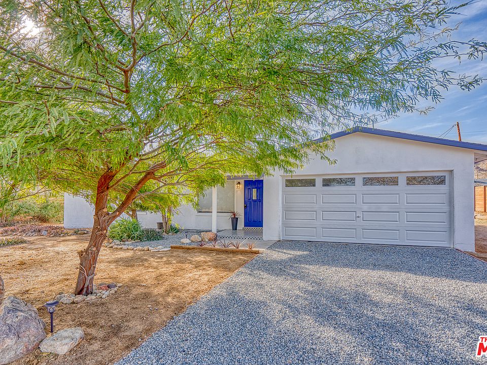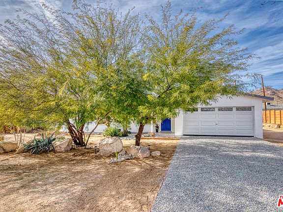 Welcome to Cobalt Ranch. A totally re-imagined hi-desert ranch style home with a cool hip vibe with 3 bedrooms and 2 brand new bathrooms. Designed by Bravo TV's "Best Room Wins" designer/owner. Situated on 1/2 acre approx. with stunning views of the mountains. Completely fenced in yard with gate. Mature native desert landscaping including 2 Mesquite Trees and Rock garden, new 4 person hot tub and shade gazebo. new HVAC with new ducting and vents, all new interior doors, all new electric outlets and switches. New washer/dryer and new sliding doors and rear windows. gorgeous new vinyl wood flooring throughout. Amazing home or 2nd home with great earning potential for Air bnb short term rentals. Available fully furnished for right price. this will not last long