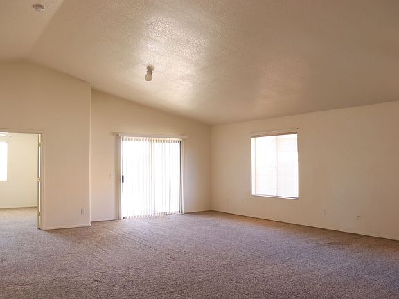 Welcome to Chaparral Village in Sierra Vista, AZ! This charming 3 bedroom, 2 bathroom home features a cozy breakfast nook, electric range, and stainless steel refrigerator in the kitchen. The vaulted ceilings and ceiling fans throughout the house create a spacious and comfortable atmosphere. Enjoy the privacy of the enclosed backyard and covered patio, perfect for outdoor entertaining with open space behind you. The split floor plan offers added privacy, with the en suite primary bathroom providing a luxurious touch. With a two car garage, air conditioning, built-in microwave, and washer and dryer hookups, this home has everything you need. Resident is responsible for all utilities. Small dogs will be considered with owner approval and an additional deposit.