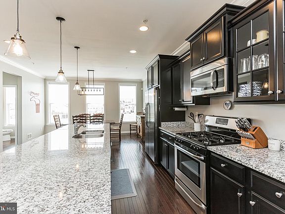 Fabulous townhouse featuring 3 bedrooms, 3 full baths and 1 half bath. The main level features a gorgeous updated kitchen with granite countertops, custom cabinets and stainless steel appliances. Large kitchen island and half bath. Beautiful hardwood flooring throughout. Spacious living and dining areas leading to a private deck. The upper level features a generous master bedroom with an updated master bath and large walk in closet. 2 additional bedrooms, 1 full bath and laundry. The lower level features a large family room area with new luxury vinyl plank flooring ,full bath and walk out to a nice patio area and fully fenced backyard. Garage access. Close to shopping and major highways. A MUST SEE!!
