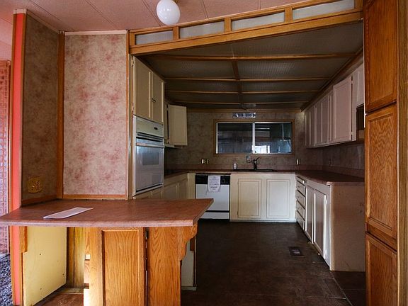 **Bank Owned / REO / Foreclosure** Located in a quiet manufactured home community. Cheerful interior appearance. Two car garage. A/C. Gas hot water heater. Some unique built ins like hutch in the dining room and storage in bedroom. Backs to small creek for additional privacy and beauty. Mostly cared for but does need some TLC. HOA $50 per quarter and covers common areas, club house. See REO Instructions.