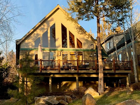 Great Chalet at the Running Y, This 2 primary suite floorplan with loft office, laundry room, and an oversized two-car garage. Home is in excellent condition with gas fireplace in the living room as well as a garden bathtub and walk in closet in the upstairs primary bedroom. The rear deck has views of the mountains and sunsets. The deck is wired for hot tub with privacy alcove, while also plumbed with natural gas for a gas grill . Additional usable storage available both under the home as well as in the eve areas upstairs. Enjoy all the Running Y resort living has to offer - Walk to the sports and fitness Center, restaurants, and market. Chalet living is a carefree lifestyle with the HOA maintaining the painting, snow removal, decking, landscaping and roof replacement.