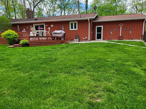 Come see this Country Oasis! Drive up the circle drive to view a 3 bedroom/3 bath home in a beautiful, picturesque setting just waiting for new owners! So many options for entertaining guests and enjoying this country oasis from relaxing on the large front porch, deck off the dining area, downstairs in the finished basement featuring a bar area, or through the back wooded yard - sky is the limit! The entry foyer leads to the open concept living room with a desk area, kitchen, and dining room with a wood burning stove. Maple Shaker cabinetry with roll out pantry shelves and decorative upper cabinets are plentiful in the kitchen. Entertainment through baking/cooking, parties, holidays, or get-togethers can happen around the oversize bar/island which also has roll out shelve cabinets. Relaxation within the primary bedroom comes with the magnificent view and ensuite bathroom featuring a tiled, jetted bath/shower. Down the hall are two large bedrooms with large closets, and a full-size bathroom with a double sink vanity. Need more space for entertainment or extra living area? Wander downstairs to the full finished basement featuring a bar area, wood burning fireplace, and another bathroom. There is plenty of area to make another living space or bedroom for overnight guests. How about a pool table, air hockey, or theater? No problem! There is a two-car garage 22'x24' features above area shelves for storage. A 30'x40' two bay building includes a large shop and ample above storage area - great mancave or entertainment area as well. This home features a geothermal system (1998) which makes it an efficient home. Many areas for relaxation, entertainment, sports, or even a pool in the future - all could be yours with this Country Oasis!
