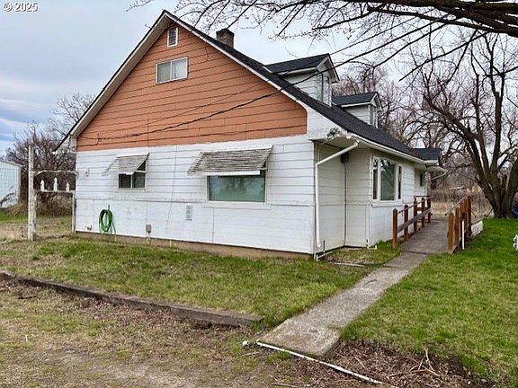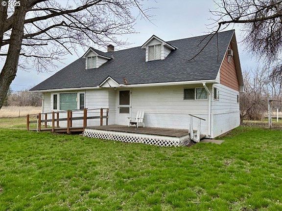 This 4 bed, 2 bath, 1649 Sq Ft home sits on 1.06 acres with a 3-bay garage/workshop. Two story home with 2 beds, 1 bath on each level. Newer composition roof. It has its own well and septic. There is a garden /pump house building also. This property features original wood floors, wood heating, and electric baseboards. The Kitchen appliances and the washer and dryer are included. Situated on the CTUIR Reservation, this home offers ample room for expansion and lots of room for a garden and privacy. Additionally, it is conveniently located near the Umatilla River, known for its excellent fishing opportunities. Call your real estate agent today to set up a showing.