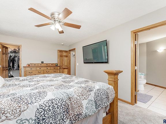 Seller is offering a $4,000 Flooring Allowance w/ an Acceptable Offer!!! Welcome to your tranquil retreat just on the outskirts of Sioux Falls! This home features 4 bedrooms and 3 bathrooms, including a luxurious primary bedroom with an en-suite bath, a heated garage floor for those cold winter days and a third stall with AC for those hot summer days! Nestled on a sprawling acre of land, this home offers a serene escape. Inside, discover the allure of real wood floors paired with new carpeting on the main level, creating an inviting atmosphere. The kitchen boasts meticulously crafted inset cabinetry, perfect for culinary enthusiasts. Enjoy the cozy ambiance of a fireplace in the basement and a walkout to the expansive yard, ideal for outdoor gatherings. Step onto the tranquil deck surrounded by trees, accessed through a slider, offering a peaceful sanctuary. With its perfect blend of comfort and nature, this home is an oasis waiting to be cherished!