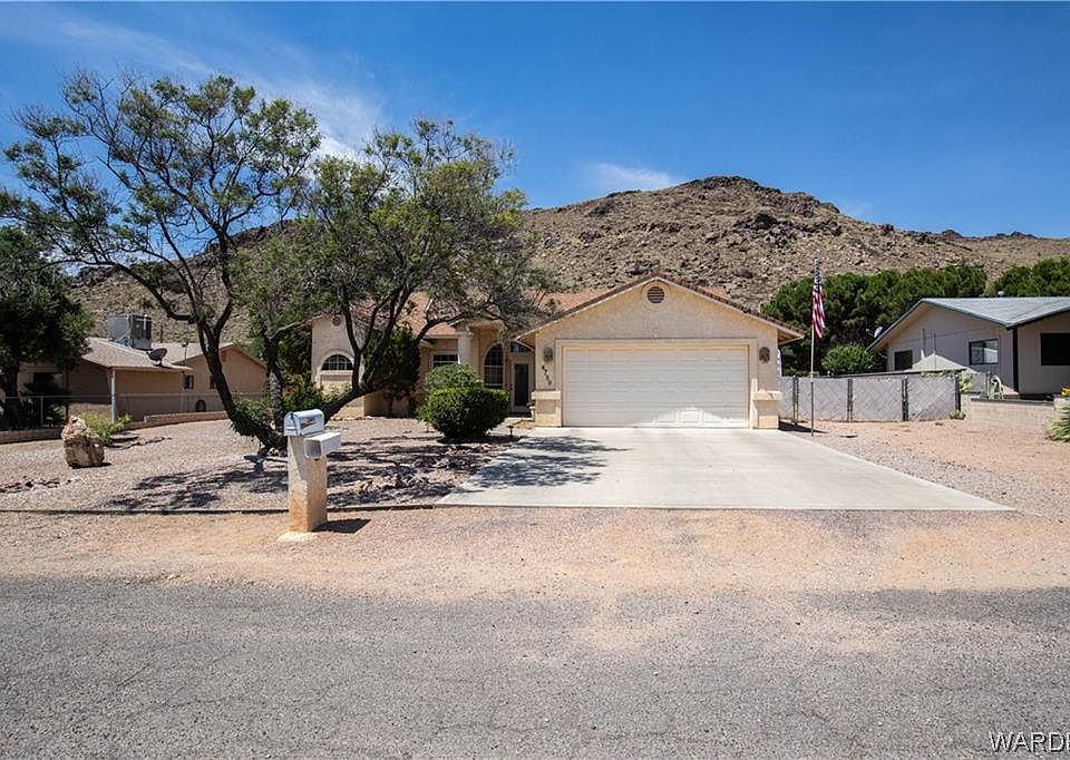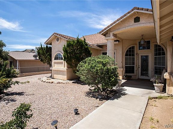Welcome to Kingman Camelback subdivision! Well maintained neighborhood with amazing mountain views! The home sits on a fenced .51 acre lot with mature trees! Split bedroom floor plan with new AC/heat...features 3 bedrooms/2 bathrooms...both casual and formal dining areas..office area off living room...decorative arched windows...ceiling fans throughout...well appointed kitchen with lot's of counter space...breakfast bar...gas stove...dishwasher...built in microwave...indoor laundry room with cabinets and sink! Master has 2 closets...separate large soaking tub/shower...his and her vanities! Home features an attached 2 car garage...BONUS detached garage/ workshop with AC and shelving! RV parking! Beautiful home for a great price! Call today for your personal tour!