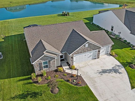 Fish from your own pond! Welcome home to this beautiful just like NEW* ranch located on a gorgeous pond lot with a 3-car garage in Preserves of Carroll of Carroll Creek West! This home offers a split floor plan with an open concept making it ideal for entertaining. 3 bedrooms & 2 full bathrooms. The primary bedroom offers an en suite & with an oversized closet. Enjoy the backyard views from every angle of this home. Step out onto the covered patio overlooking the pond with additional stamped concrete & a spot ready to go for your fire pit. The kitchen offers an island with stainless steel appliances & backsplash. Safe Haven Alarm system, Arlo cameras & water softener included with the sale of the home.