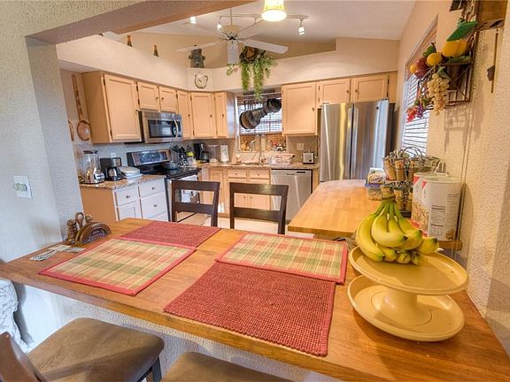 - Interior Features: Cathedral Ceiling(s), Ceiling Fans(s), High Ceiling(s), Split Bedroom, Vaulted Ceiling(s), Walk-In Closet(s), Window Treatments, Unfurnished, Eating Space In Kitchen, Attic, Stone Counters