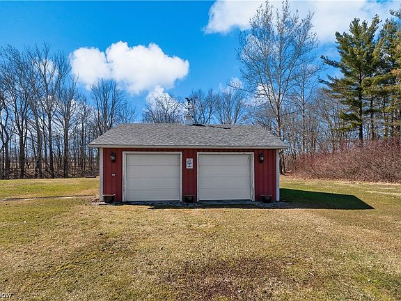 Charming 3 bedroom, 2 full bath home in Western Reserve School District. Situated on 2 parcels totaling 3.67 acre of land with a creek running along the back to the Vermilion River. Two car attached and two car detached garage! House & garage roofs replaced in 2021! The kitchen was updated approx. 10 years ago by Virgil kitchens w/solid surface counters. A large, porcelain sink. French door refrigerator. Natural gas stove. Microwave and dishwasher. Two guilt-in cutting boards too! A walk-in pantry behind the stove, and linoleum floors. The living room and dining room are open to the kitchen. Two first floor bedrooms with carpet and fan lights. A full bath with dual sinks, 4 mirrored medicine chests, a tub/shower combo and laminate flooring 2 installed years ago. The family room was a former breezeway with a fan. Newer man-door & storm door. Linoleum flooring and heat ducts. A second full bath with walk-in shower off this room. Headed upstairs to the third bedroom with vaulted ceilings,