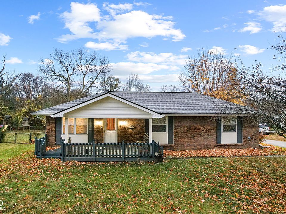 Beautiful Center Grove home with a large lot in a quite neighborhood. Enjoy sitting on the large covered front porch or the large covered deck in the back. The expansive back yard is completely fenced and ready for children and/or your fur babies. You will be close to everything without feeling like you are. This solid home has newer vinyl plank flooring, large ADA bathroom, roof, granite countertops, and more. Don't miss out on your opportunity to be in Center Grove school district at an amazing price an no HOA.