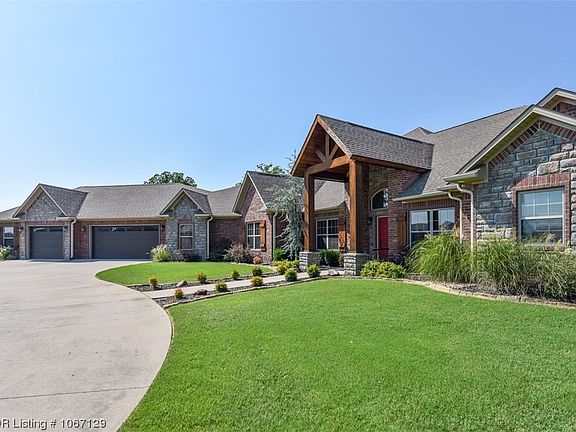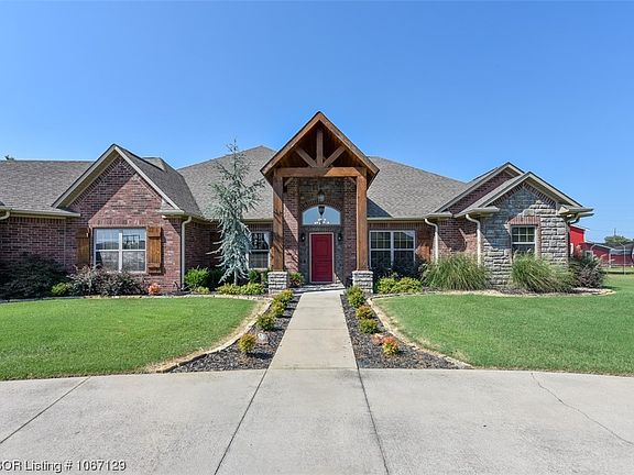 Colorado inspired estate home sitting in beautiful Whispering Winds addition between Roland/Muldrow. This home is loaded with upgrades! The house sits on 2+ manicured acres with an in-ground pool, outdoor kitchen, outdoor bathroom, screened in porch, large covered porch and outdoor fire pit. The home offers geothermal hvac for low bills, granite, Thermador