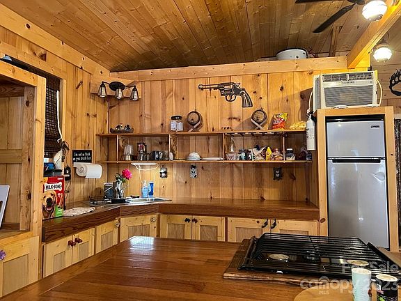 Whittier , NC. One bedroom One bath Cabin with 800 sq. ft. nestled in the Great Smoky Mountains. 1.51 Ac. Gated. Private. One workshop and a Storage building with laundry area. Lots of windows to enjoy nature at its finest. Great view in the winter months. New bathroom and kitchen with beautiful wooden bar area. Raised ceiling. Pellet stove. AC Unit. Lots of nice additions. Fenced yard for the puppies. Metal roof. Private well and septic. Come take a look!