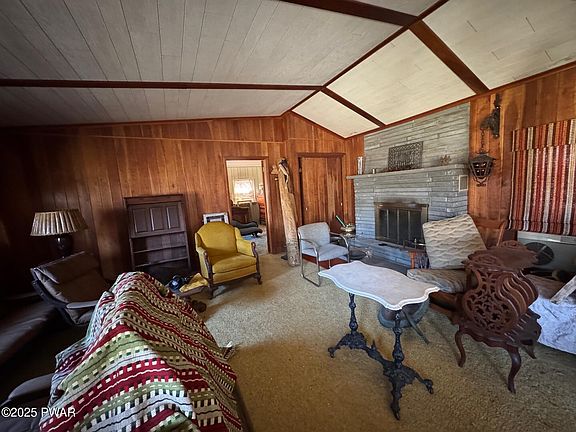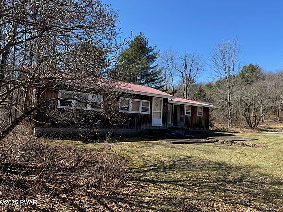 Charming 2 bedroom, 2.5 bath home on 21+ acres with private pond, and the Equinunk Creek running through the property. Needs TLC.