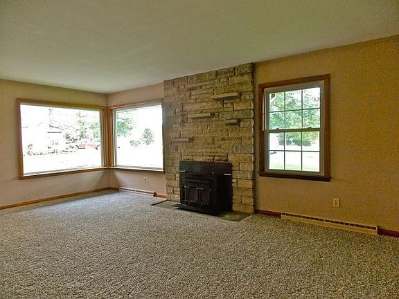 Mid century ranch home on over a half acre of beautiful mature trees. Expansive living room with stone fireplace and two huge picture windows. Freshly painted and new carpet. Windows have been replaced. Updated oak cabinets in kitchen with dishwasher, gas range and refrigerator. Large eating space with cool round window. Two large bedrooms. Full basement to expand. Concrete patio. Oversized one car garage. Architecture features hip style roof with dimensional shingles. Great curb appeal, feels like the country but located right in the City of Gahanna!