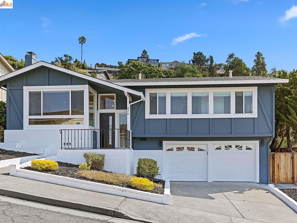 This beautifully updated Mid-Century Modern Home in the Oakland Hills will blow you away. Peek-a-boo Bay Views, remodeled kitchen, dual-pane windows, 3 bedrooms, 2.5 remodeled bathrooms, plus a den/bonus room downstairs. Freshly painted exterior, extra large deck, useable yard space, and gorgeous swimming pool. The Primary Bedroom is an oasis with partial Bay Views, ample closet space, and a fabulous ensuite bathroom with double sink vanity, free-standing soaking tub, and oversized shower stall. So many upgrades: Level 2 EV charger in garage plus 2/240 outlets, WiFi enabled garage door and keypad, sump pump added in 2019, Italian porcelain tiles in the bonus room, custom window coverings throughout, Nest thermostat, Ring doorbell camera at front door and gate. The list goes on and on. The pool has an electronic cover added for safety and convenience in 2019. The kitchen boasts beautiful cabinets and quartz countertops. You'll find a GE dishwasher, Bertazzoni Stove/Oven, GE fridge with hot water, and Keurig pod coffee attachment. And in the garage, there's a GE washer and dryer. This home has been loved and is ready for its new owners to make it their own.