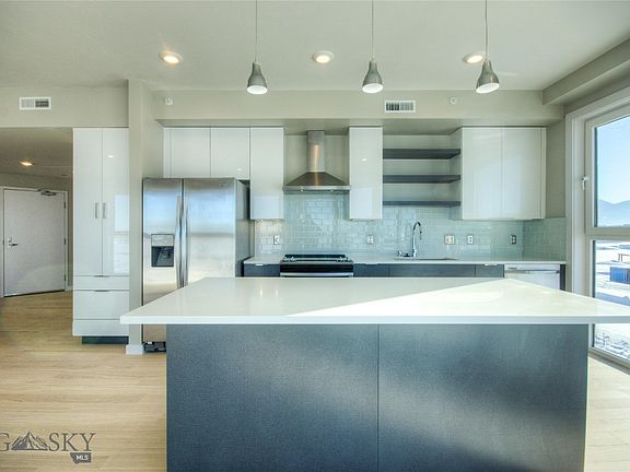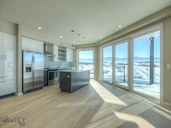This is your chance to own the largest condo on the top (third) floor of this modern south side building with wonderful southern and western exposure and some of the best views in Bozeman! This corner unit has lots of large windows (European style with two opening options), hardwood floors, quartz counter tops, walk in showers and closets, LED lighting and two balconies to take in the amazing views. The building features two fitness rooms, elevators and a large lobby. There is an additional office or den that does not have a closet. The condo comes with two carports and storage unit.