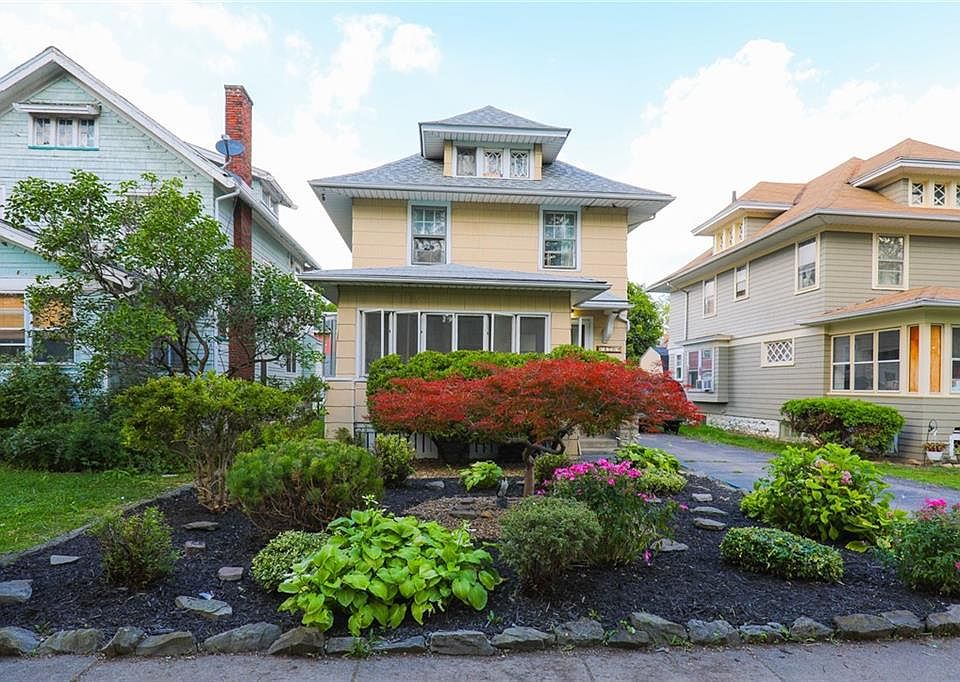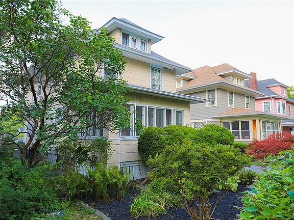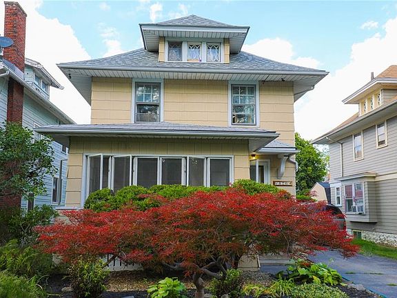 Terrific colonial with tons of curb appeal and a kitchen you have to see to believe! Natural trim and beautiful floors throughout allow this home to really shine. Spacious layout includes a large living room and dining room with coffered ceilings in addition to an enclosed porch. Conveniently located half bath with first floor laundry potential. Stunning kitchen with beautiful granite counters, deep sink, tile floors and all appliances included! As you head up the stairs, there's a lovely reading nook. Upstairs are 3 total bedrooms including one with a freshly remodeled sleeping porch and the largest with hardwood floors and plenty of closet space. An updated full bathroom completes the upstairs layout. Large finished attic space not included in sqft adds more room to spread out and a clean basement provides additional space as well. Outside is a detached 2 car garage and fully fenced yard. Major mechanics have all been updated including roof (2018), electric (2013), furnace (2017) and H2O (2020). RGE budget amount is only $105/mo! Nothing to do but move in, which can be expedited in just 30-45 days! Delayed showings until Wednesday 8/26 at 9am.