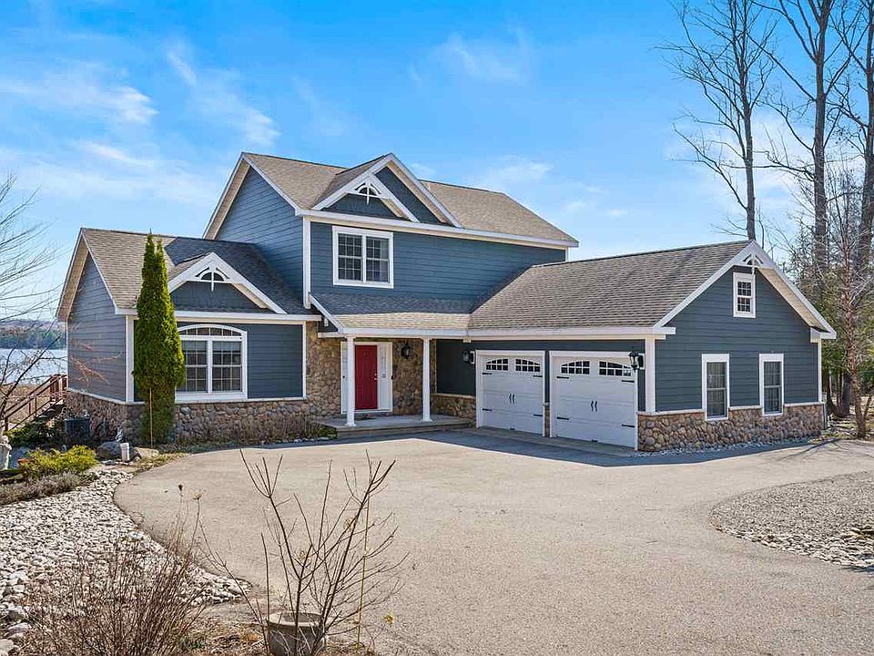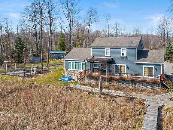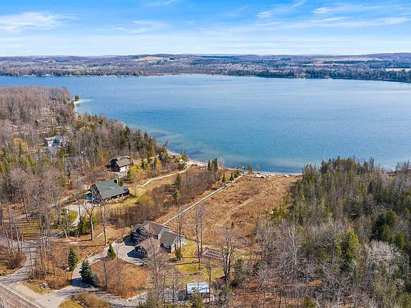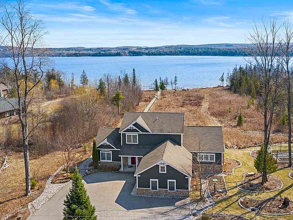 A diamond opportunity on the quiet waters of Lake Charlevoix's South Arm with 215' of frontage. An exquisite home with many updates including granite countertops, wood floors, and a spacious easy living kitchen. The dining and family room area have huge views of the outside and the water. A lakeside master bedroom with a large master bath is on the first floor, with 3 bedrooms and 2 full baths on the second floor. The home offers easy access to the deck that sprawls across the lakeside of the home. No matter where you are, the large windows throughout invite a warm feeling of nature inside. The beautiful gardens are a very nice touch along with the walkways that meander through the property. Also included is a wood-sided shed/storage barn. A golf cart path brings you to the lake or take the raised boardwalk that extends from the home to the water's edge. A firepit at the lake completes the scene for hours of summer evening enjoyment.