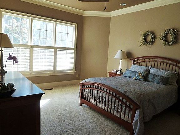 Beautifully landscaped 3/4 brick home on quiet street, backs to 3rd green. Check out the interactive floor plan at www.MustSeeGolfHomes.com where you will see extensive trim, high ceilings, ceramic in all baths, plantation shutters. Master suite & 2nd bedroom suite on main. Sunlit rooms take advantage of the views. Second floor has 2 additional bedrooms, each connected to a bath & huge bonus room could be 5th bedroom. Large loft with wet bar & tree house views. A screened porch & large deck with retractable awning for outdoor living. A custom koi pond with waterfalls creates tranquility.