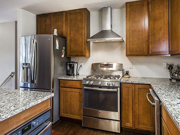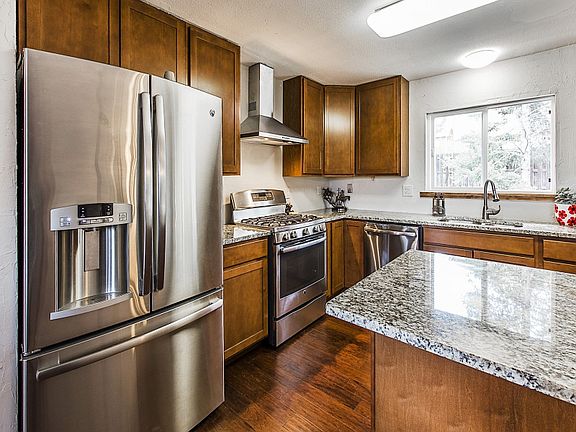 Close to downtown Castle Rock with views and no HOA! Beautifully updated kitchen with new slab granite counter tops, 42" cabinets and GE stainless steel appliances, including a convection oven/microwave. 3 bedrooms and 2 baths on the upper level and lower level has a 1/2 bath, family/flex room and the laundry room. The Master Bedroom has its own on-suite bath. The nice size living room has been remodeled with new floors, paint and windows with mountain views. The new slider door opens up to the big deck overlooking the backyard with mature trees and chicken coop. Easy access to restaurants, shopping, Burgess Public Pool and trails.