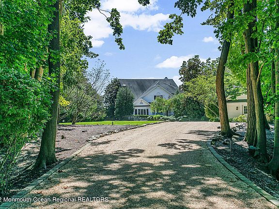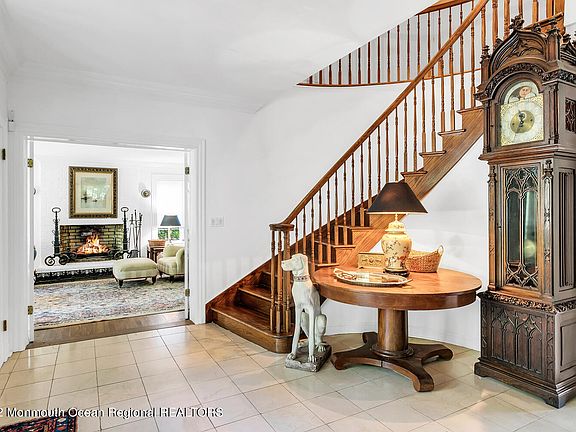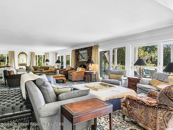 Beautiful entry leading to a 3.8 acre waterfront estate on the much sought after Navesink River. Directly across from the 12th green of the Navesink Country Club. This property offers a deep water dock w/ Riparian grant, swimming pool, stunning waterviews, 5,270 sq ft main residence, & a separate 2 bedroom guest quarters w/ a 4 car garage. The 1st floor of the main residence feels like a private club with a massive living room/dining room featuring a service bar & an oversized fireplace all with beautiful water vistas. Spacious kitchen w/ large center island & built-in buffet all overlooking a comfortable family room w/ fireplace. A private office/library with built-ins and fireplace completes the first floor. All within minutes of the high speed ferry to NYC & nightlife of Red Bank.