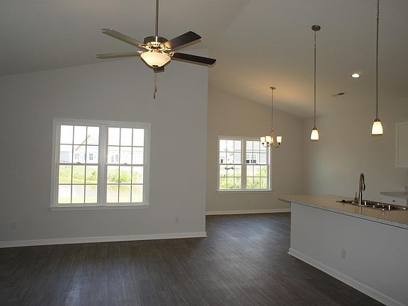 Beautiful Topsail floor plan under construction in Ocean Palms. This terrific open floor plan, 3 bedroom, 2 full bath home will have upgraded luxury wood look sheet vinyl flooring under the soaring vaulted ceiling in the family room, kitchen and dining area and in bedrooms. Stainless appliances, staggered height Shaker-style white painted cabinetry and a kitchen island, and added cabinet and counter space combine to give the kitchen the wow factor you're looking for. A French door in the dining area leads to a large covered porch with a patio. The spacious owner's suite features a tray ceiling, long vanity, an oversized walk-in shower, plenty of storage in the cabinetry plus two huge walk-in closets. Two additional bedrooms and a bath are tucked off on their own private hallway, for privacy. All of the homes in Ocean Palms come standard with the luxury of Natural Gas (tankless water heater, gas heat, and gas range). The garage is completely trimmed and painted. Ocean Palms is conveniently located near shopping, restaurants, schools and world class medical offices and hospitals, and a short golf cart ride to Surfside Beach's gorgeous beach and the Atlantic Ocean. Other floor plans and inventory homes may be available. Community Pool and Cabana are now open! Photos are of a completed, similar home and may have different features.