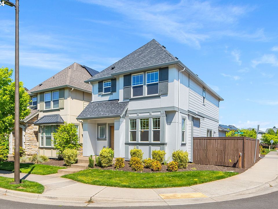 OPEN HOUSE SAT 5/11 1:30PM-3:30PM. Fantastic corner lot in Baseline Woods! Southern facing windows, slider, and yard receive excellent light throughout the day, as there is not a house blocking the sun. This modern Craftsman style home features high ceilings and an open floorplan. Spacious kitchen with stainless steel appliances, fridge, full height backsplash, and tile counters. Upstairs includes a spacious primary with large walk-in closet, dual vanity, coved ceiling, and walk-in shower. Washer and dryer upstairs as well. Air conditioning, rear entry 2 car garage, and oversized fenced yard with extended paver patio. Awesome location, just blocks to MAX, shopping, restaurants, Nike, Intel, and more.