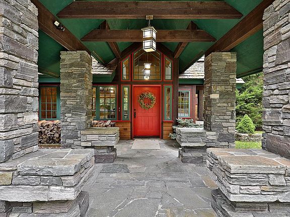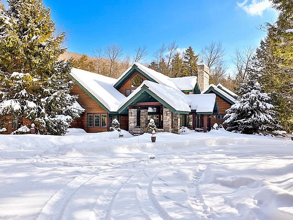 Serena Lodge was inspired by the legendary William Rockefeller estate in the Adirondacks, known as The Point, and thoughtfully designed to reflect its inviting look and warm, rustic elegance. This 9,000+ square foot residence sits atop a knoll beside a lively creek with small waterfalls, creating a peaceful, natural soundtrack. The Great Room is the centerpiece of the home, with a soaring stone fireplace, floor-to-ceiling windows, two sitting areas, and an open kitchen framed by thick granite counters. Just outside, a terrace with built-in barbecue and stairs leads down to the creekside. The east wing features a serene primary suite with a fireplace, sitting area, and private balcony. The west wing includes four en-suite bedrooms and a family room. A loft above offers space for an office, artist studio, or reading nook. The lower level Adirondack Room (25' x 38') is perfect for games and movies, with flexible sleeping options, plus a bonus room, full bath and a woodshop that doubles as garage space. Fully air-conditioned with high-speed internet and a backup generator, Serena Lodge offers comfort and convenience year-round. Located in the Hawk community and serviced by Hawk Property Management, it is just a short drive to Okemo and Killington. Whether you seek solitude or connection, adventure or rest, this stunning home offers it all.