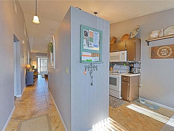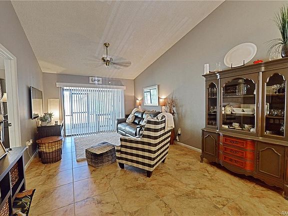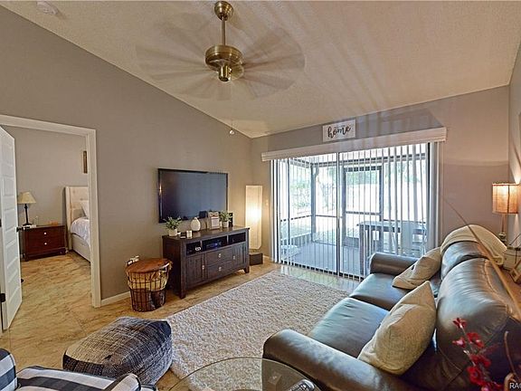 Anglers Landing! Maintenance free waterfront community is a great place to live if you are looking for something quiet, easy to take care of and close to town. This 2 bedroom, 2 bath attached villa is perfect as it has a community pool, boat docks and walking distance to the Rails to Trails bike path. Updates include new roof, new AC, new water heater, tile throughout, brand new shower in master and fresh paint. Vaulted ceiling in living area gives you a spacious feeling inside and you have a screened lanai out back to sit and relax. Call for your personal viewing today!!