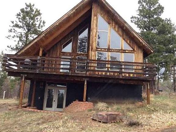 Unique 2 bedroom home on over 1.5 acres! The home features a covered front porch, a loft area with multipurpose potential, many windows throughout the home, and lots of texture with wood planked ceiling, walls, and floors. This home sits in the Aspen Springs subdivision with a few other homes on large lots. High capacity 2,000 gallon cistern and enclosed pump shed. Beautiful sunset views of Chimney Rock and Devil Mountain from the enormous back porch. Extras such as a grow dome and chicken coop. Lots of privacy here with a nicely landscaped yard. Come and see if this home is for you!