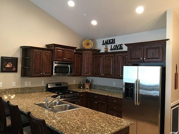 A quick 3 minute drive to the freeway! This condo has a lovely layout and opens with a spacious well-lit living room complete with vaulted ceilings and large windows. The kitchen features beautiful granite counter-tops, that also match the bathroom granite, an abundance of counter space for cooking and plenty of cabinet space. Spacious master suite has crown molding, large master bath with double sinks and a walk-in closet. Each room boasts huge windows that let it the natural sunlight and mountain views from each window. 3 bedrooms, 2 full baths with separate laundry room and porch and storage closet outside. Incredible walking trails and parks located just minutes away and two elementary schools within walking distance. Springville's great library right around the corner and a brand new Smiths Marketplace across the street. Qualified applicants will have good rental history, monthly income of $3300+, and a credit score above 600. no pets, no smoking, reserved parking spot. Month-to-month available after the first year.