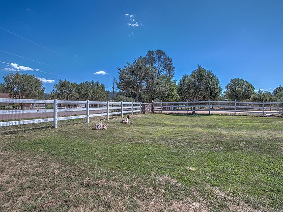 Country Living at its best! This family or multi-generational home is spacious, single level, the land is flat & usable with mountain views, room to add a garage, fenced. Wood flooring in living, kitchen & dining room, fireplace, french doors open to a covered patio, spacious kitchen with stainless refrigerator, breakfast nook, dining room, large master & bath, indoor laundry with pantry & extra storage. Guest quarters with separate entrance & thermostat. Ideal for a multigenerational family, 4th bedroom, office or business, open patio, work shed, metal covered 2 horse stall, corral, RV parking/2 gates, private well, No HOA, Horses Ok, miles of National Forest riding trails at your door step! Sellers are offering $5,000 flooring credit.