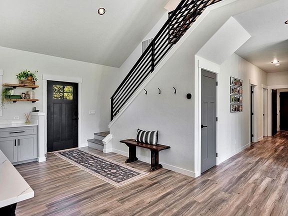 This stunning custom craftsman home, built in 2021, is perfectly situated on a spacious .93-acre lot and features 2,144 square feet of living space. With 3 bedrooms and 2.5 bathrooms, the home offers a beautifully designed layout that includes vaulted ceilings and durable laminate plank flooring. The kitchen is a highlight with custom cabinets and sleek quartz countertops, which are consistent throughout the home. The master suite is a private retreat with a walk-in closet, dual vanities, a soaking tub, and a separate glass shower. Upstairs, the versatile bonus room, complete with custom wrought iron railings and a half bath, offers flexible space for a family room, office, or gym. Outdoor living is just as thoughtfully designed with a covered front porch and a private rear deck overlooking the expansive backyard. A large 30x40, heated, and insulated shop on the property adds incredible value and practicality. This home combines the ease of modern living with the charm and solidity of traditional craftsmanship, making it an ideal choice for those seeking quality and comfort.